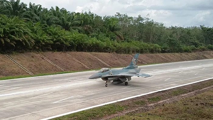 Tol Jadi Landasan Tempur, F-16 TNI AU Uji Coba Mendarat di Trans Sumatera