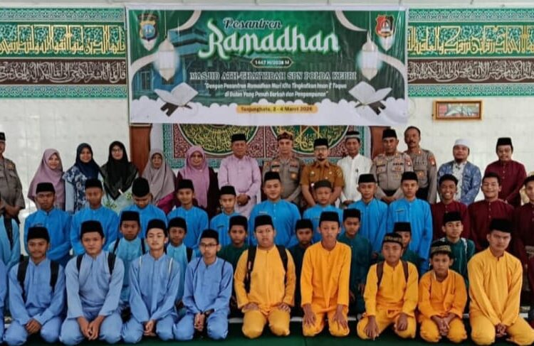 MaklumatKepri.com, Karimun-Puluhan pelajar di Kundur mengikuti pesantren Ramadhan yang digelar masjid At Thayyibah SPN Polda Kepri di Tanjung batu Senin 02/03/2026. Pesantren Ramadhan dibuka secara resmi Kabagjarlat SPN Polda Kepri Kompol Hendriyanto S.H., M.H.