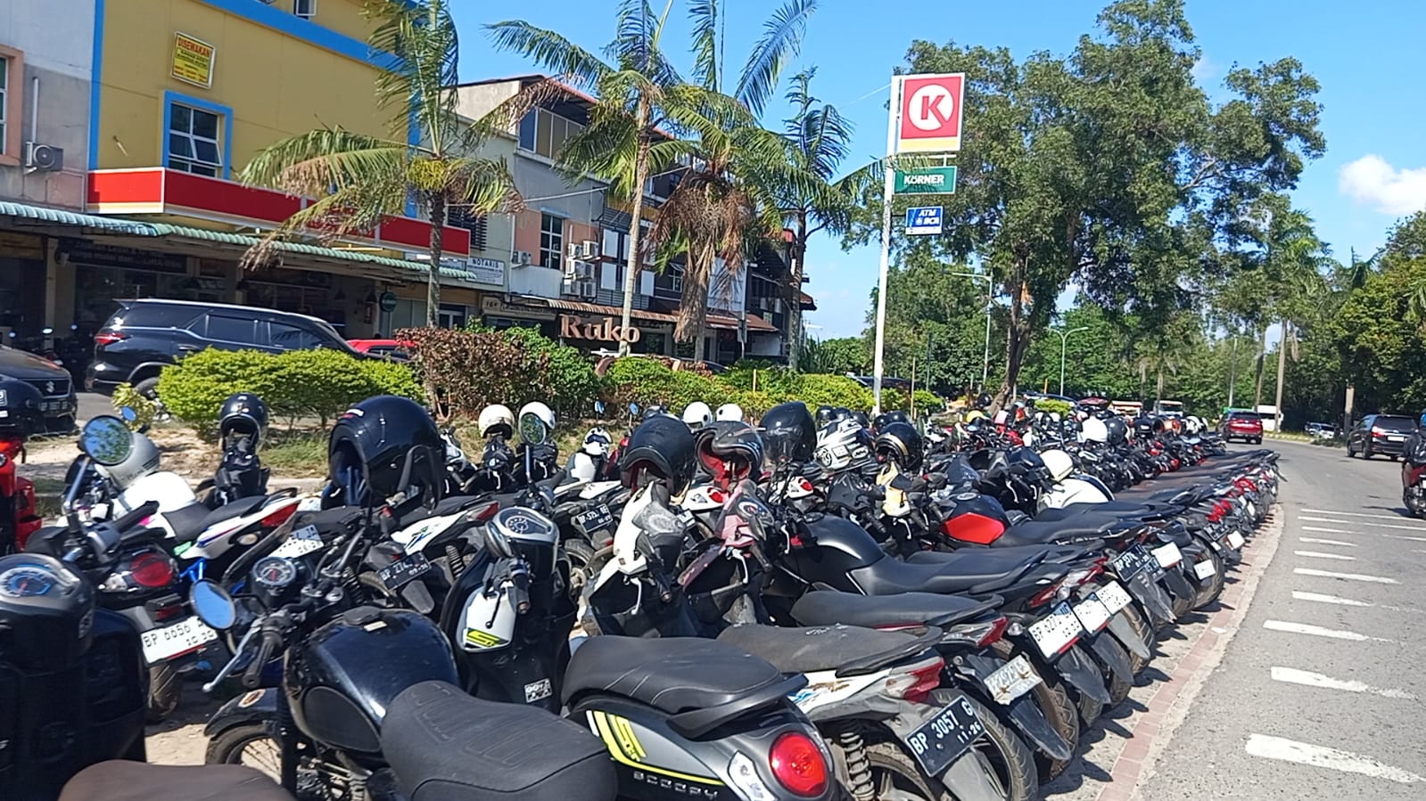 Bahu jalan itu tampak berada diseberang PT Panasonic dan tampak dipenuhi kendaraan roda dua yang diparkir berjejer hingga sekitar 100 meter. Deretan sepeda motor tersebut terlihat mulai dari area lampu merah hingga ujung ruko di sekitar lokasi.