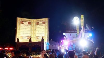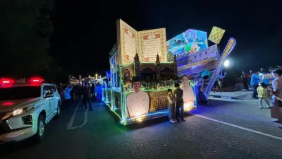 Beragam bentuk ditampilkan para peserta, mulai dari replika masjid, miniatur kapal, hingga ornamen naga hitam yang atraktif. Warga pun memadati sisi jalan sejak titik awal di Dataran Engku Putri untuk menyaksikan pawai yang sarat nuansa religius dan kebersamaan tersebut.